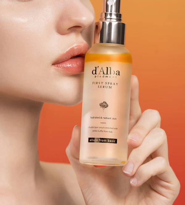 - اسپری سرم ترافل سفید (White Truffle First Spray Serum): محبوبترین محصول d’Alba که پوست را فوری آبرسانی کرده و جلوه شفاف و درخشان ایجاد میکند.
