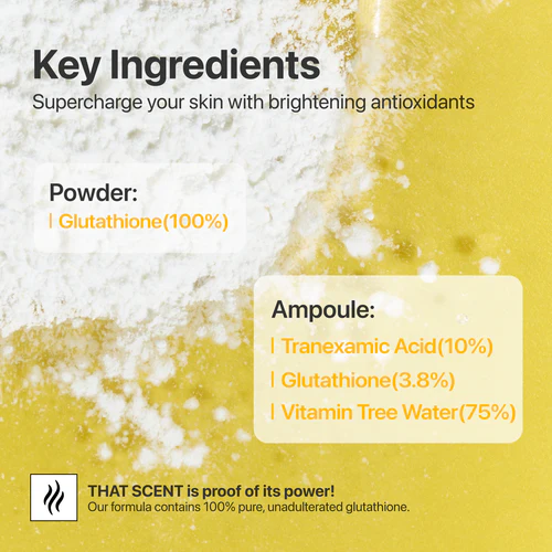 ترکیبات اصلیگلوتاتیون، ترانگزامیک اسید، نیاسینامید، آلفا آربوتین