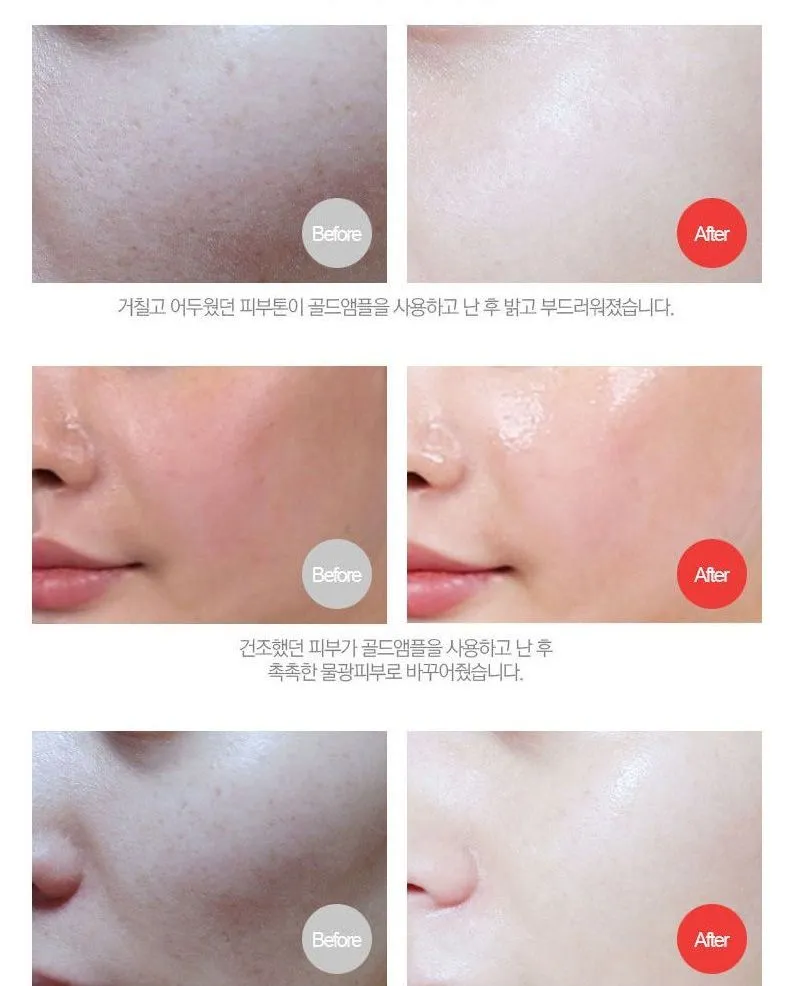 - احیا کننده قوی با طلای 24 عیار: طلای خالص موجود در این آمپول، یک آنتیاکسیدان فوقالعاده است که از پوست در برابر آسیبهای محیطی محافظت کرده و به احیا و بازسازی سلولهای پوست کمک میکند. همچنین، گردش خون را بهبود بخشیده و شادابی را به پوست شما هدیه میدهد.