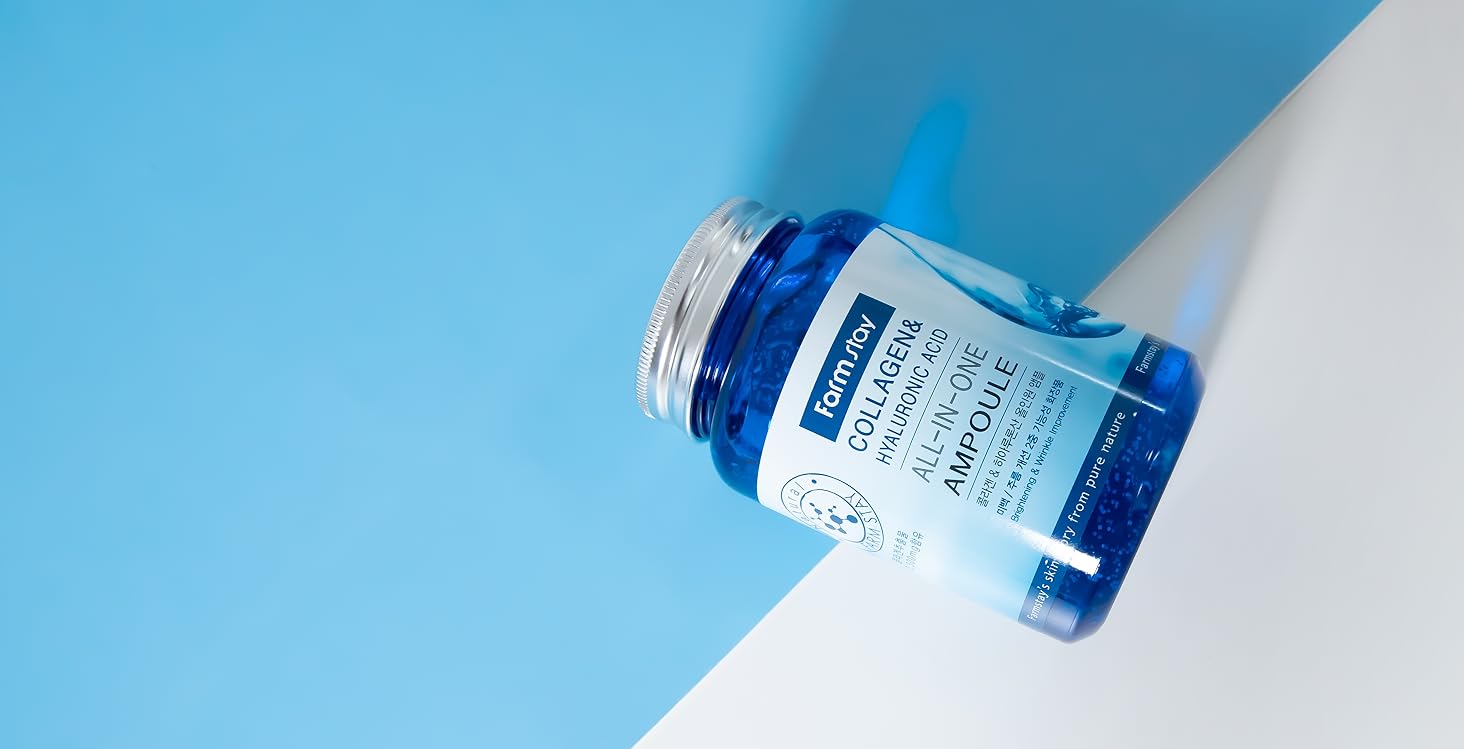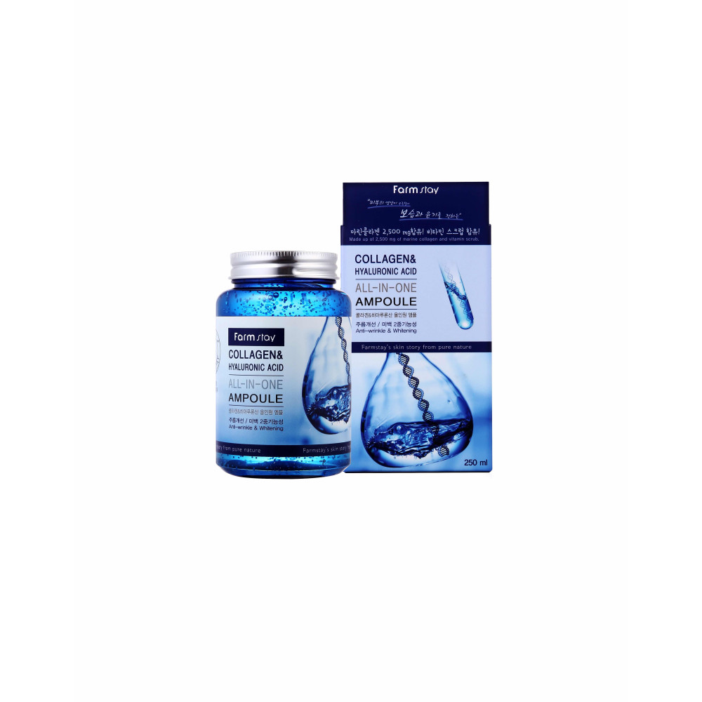 آمپول هیالورونیک اسید و کلاژن فارم استی Farmstay Collagen & Hyaluronic Acid All-in-One Ampoule 250ml یک محصول مراقبت از پوست است که ترکیبی از کلاژن دریایی و اسید هیالورونیک را برای بهبود الاستیسیته و رطوبت پوست ارائه می دهد.