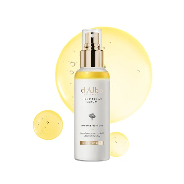 اسپری ترافل سفید د البا D’Alba White Truffle First Spray Serum محصولی شاخص و جهانی از برند لوکس کرهای D’Alba (د البا) است که به دلیل کاربرد سریع و بافت سبک خود شهرت جهانی دارد. به دلیل فرمولاسیون اسپری و تغذیه عمیق، میتوان آن را “سرم میست دو فاز ترافل سفید” نامید.