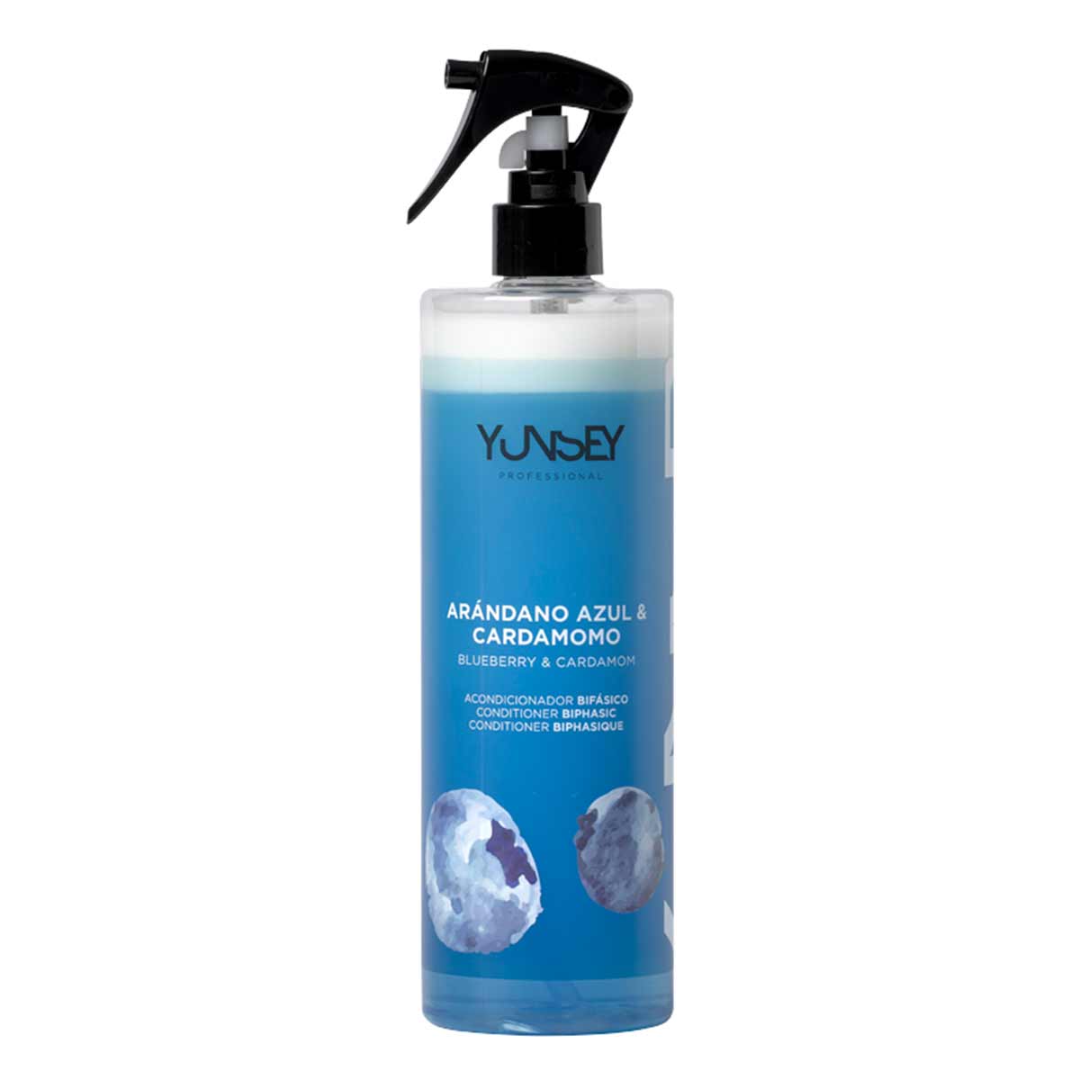 اسپری دو فاز عصاره بلوبری و هل یانسی YUNSEY به لطف فاز زیرین نیمه شفاف، الکتریسیته ساکن را ترمیم و تغذیه می کند. فاز تاپ مات روی قسمت بیرونی مو تمرکز می کند و ظاهر، درخشندگی، صافی و حالت دهی آن را به طور چشمگیری بهبود می بخشد و بقایایی نمی گذارد.