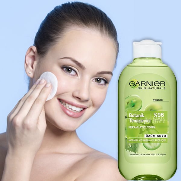 تونر پاک کننده پوست با عصاره انگور بوتانیکال گارنیه، موجب شادابی و طراوت پوست می شود. این تونر بدون نیاز به شستشو، هرگونه آلودگی و بقایای آرایش روی صورت را پاک کرده، مکمل پاک کنندگی فوم شوینده، مکمل درمان آکنه و پایه ی کرم های مرطوب کننده است.