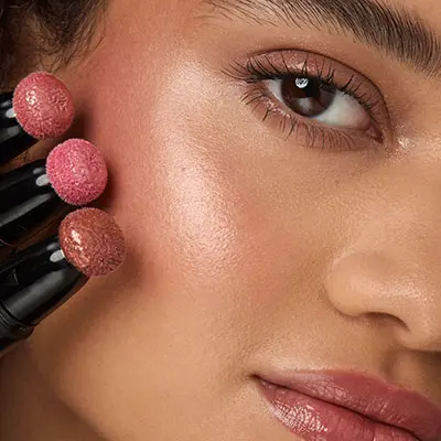 - اعمال: چند نقطه از رژگونه را مستقیماً از طریق اسفنج، روی بالاترین بخش گونههای خود (Apple of the Cheek) یا امتداد استخوان گونه بزنید.