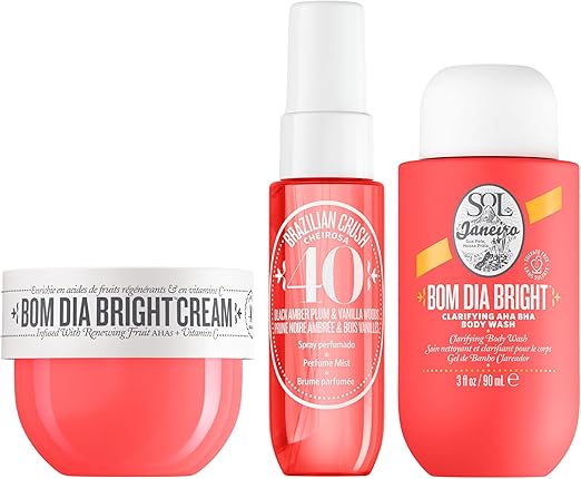 ست روشن کننده پوست سول دی ژانیرو “Sol de Janeiro Bom Dia Bright Jet Set” یک مجموعه مسافرتی از محصولات مراقبت از بدن از برند سول دی ژانیرو است که توسط برند برزیلی Sol de Janeiro طراحی شده است. برخلاف ست “Bum Bum Summer Jet Set” که بر روی سفتکنندگی و رایحه گرم و آورشیدگونه Cheirosa ’62 تمرکز دارد، ست روشن کننده پوست سول دی ژانیرو “Bom Dia Bright” (بوم دیا برایت به معنای صبح روشن) بر روی روشنکنندگی، صافکنندگی و بهبود بافت پوست با استفاده از ترکیبات لایهبردار و روشنکننده تمرکز دارد و دارای رایحه Cheirosa ’40 است.