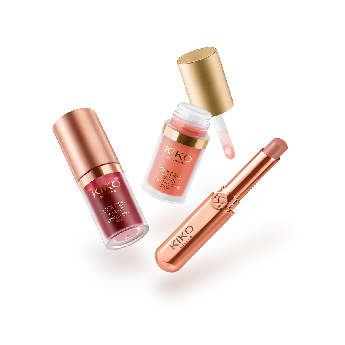 کالکشن الهامگرفته از “گلدن اواسیس”: ست بخشی از مجموعه فصلی “گلدن اواسیس” کیکو میلانو است که از شنهای طلایی صحرا و نور خورشید الهام گرفته شده. این تم، در انتخاب رنگها (تناژهای گرم و طبیعی) و بستهبندی (کیسه طلایی و طراحی شنی محصولات) منعکس شده و حسی از تجمل و گرما را القا میکند.