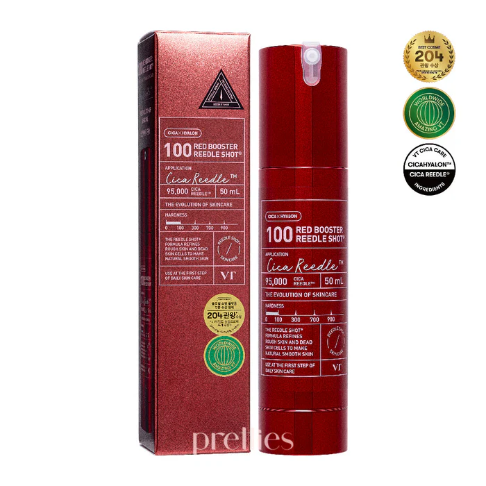 ویژگی اصلی سرم رد بوستر ریدل شات VT Red Booster Reedle Shot 100 استفاده از فناوری “Reedle Shot” با ذرات میکروسکوپی شبیه سوزن است که برای افزایش جذب مواد و بهبود عملکرد پوست طراحی شده است. عدد 100 احتمالاً نشاندهنده غلظت این ذرات است.