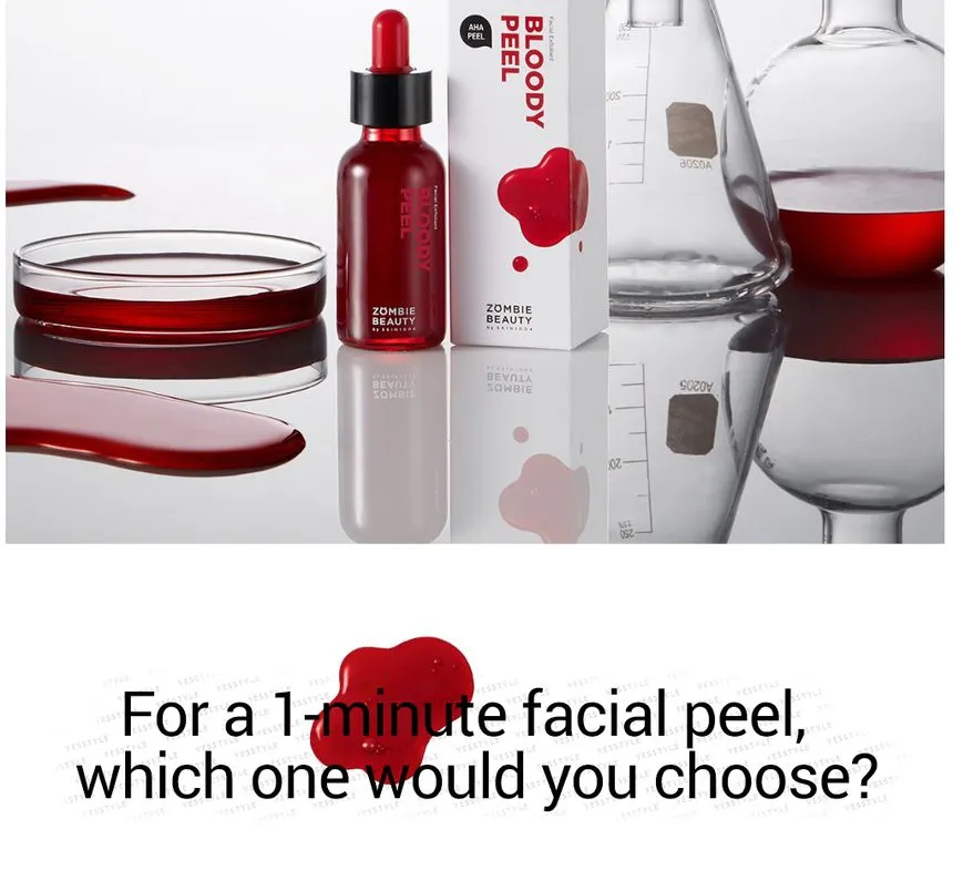 سرم پیلینگ و لایه بردار قوی زامبی بلادی اسکین 1004 ZOMBIE BEAUTY Bloody Peel یک محصول لایه بردار شیمیایی است که برای بهبود بافت پوست طراحی شده است. این محصول حاوی ترکیبی از اسیدهای آلفا هیدروکسی (AHA)، بتا هیدروکسی (BHA) و پلی هیدروکسی (PHA) است که به آرامی سلول های مرده پوست را از بین میبرد و پوست را نرم و صاف می کند.