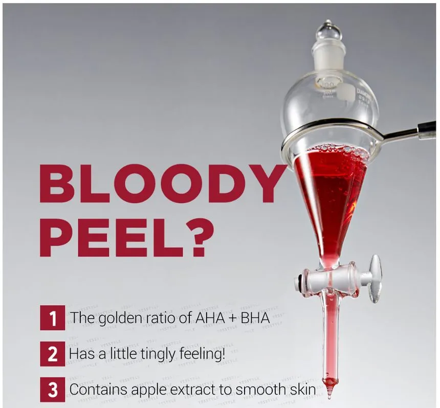 نسخه های مختلفی از این محصول وجود دارد که هر کدام برای نوع خاصی از پوست و مشکلات پوستی طراحی شده اند. نسخه Bloody Peel Light حاوی 8% AHA است و برای پوست های حساستر مناسب است.
