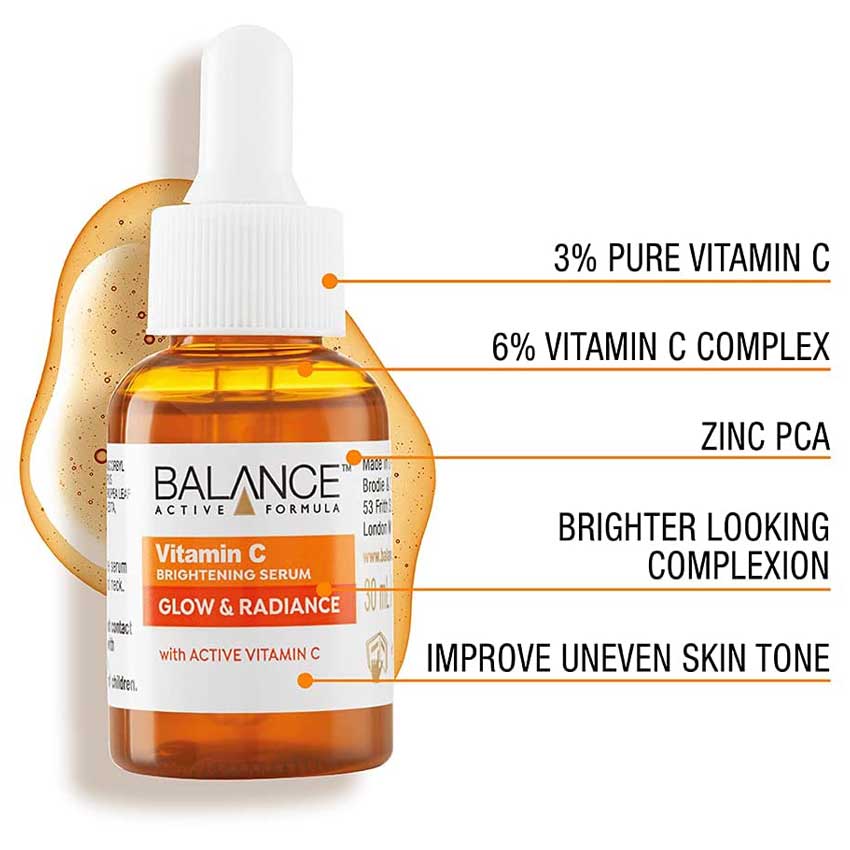 سرم ویتامین سی بالانس Vitamin C حاوی ویتامین c است که منجر به کاهش لکه ها و همچنین منجر به روشن شدن پوست می شود این سرم به حفظ قوام پوستی و یکدست کردن سطع پوست کمک می کند. سرم ویتامین سی بالانس باعث کاهش جوش و صاف شدن جای جوش میشود و لک های پوست را روشن وبه مرور جذف می کند.