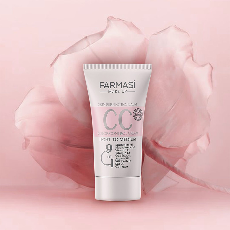 سی سی کرم 9 در 1 فارماسی FARMASI یک کرم 9 منظوره است و تصحیح کننده رنگ صورت می باشد. این محصول به دلیل دارا بودن رنگدانه های معدنی طبیعی به خوبی می تواند لکه های تیره، لکه های قرمز و نواقص صورت را محو کرده و پوششی یکدست و مناسب ایجاد کند.