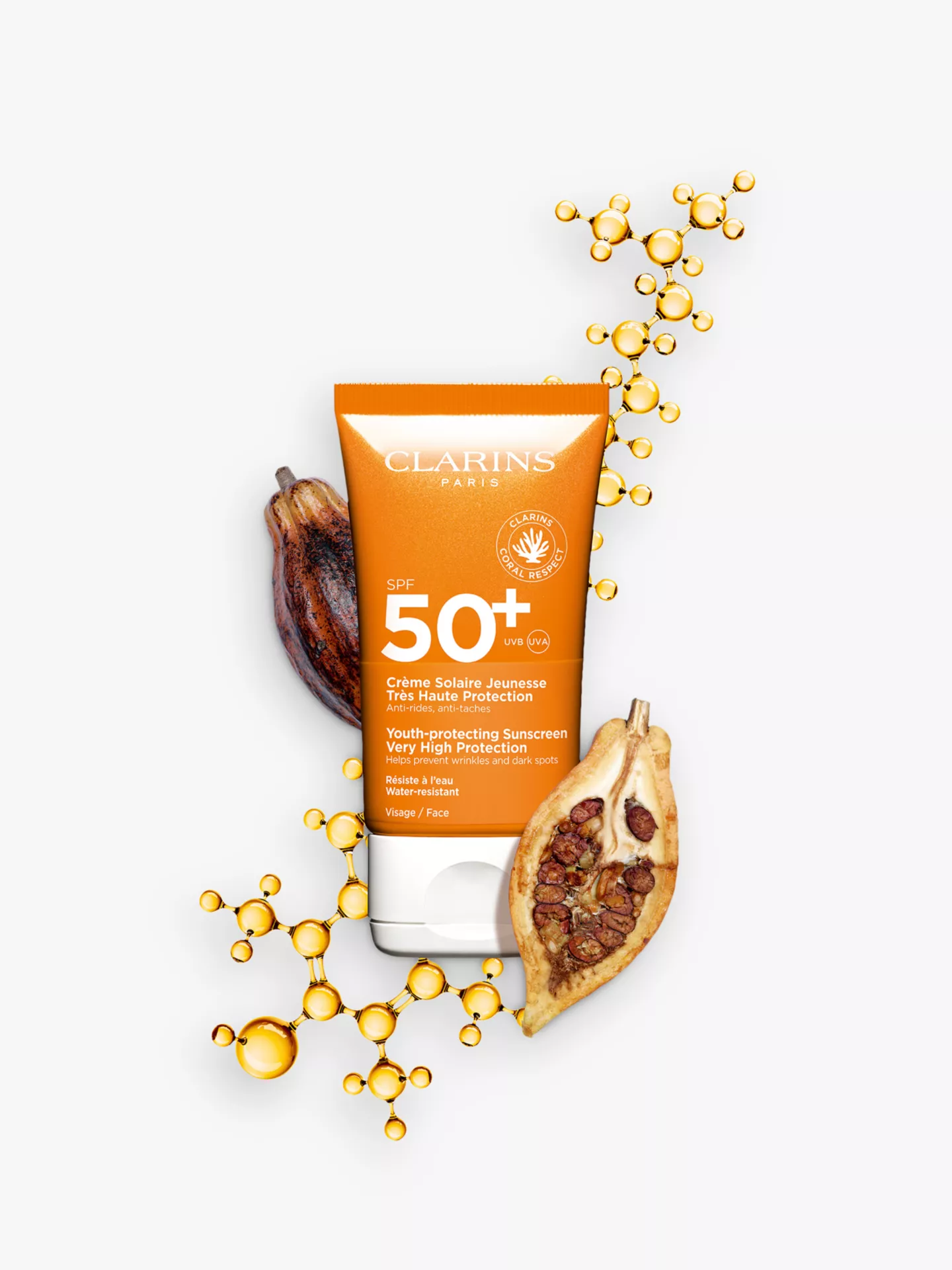 ضد آفتاب جوانساز کلارنس Clarins Youth-Protecting Sunscreen Very High Protection SPF 50+ یک محصول برجسته در دسته ضد آفتابها است که برای محافظت از پوست در برابر اشعه های مضر خورشید طراحی شده است. این کرم ضد آفتاب با SPF 50+، محافظت بسیار بالایی را ارائه می دهد و به ویژه برای افرادی که زمان زیادی را در فضای باز میگذرانند، مناسب است. این محصول با ترکیبات طبیعی و فرمولاسیون پیشرفته، نه تنها از پوست در برابر آفتاب سوختگی محافظت میکند، بلکه به حفظ جوانی و شادابی پوست نیز کمک می کند.