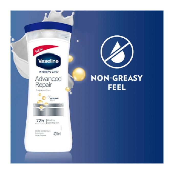 لوسیون بدن وازلین 400 میل مدل Advanced Repair با ترکیبات مغذی، بافت سبک، خاصیت ترمیمی و ماندگاری بالا، به حفظ زیبایی و سلامت پوست کمک می‌کند.