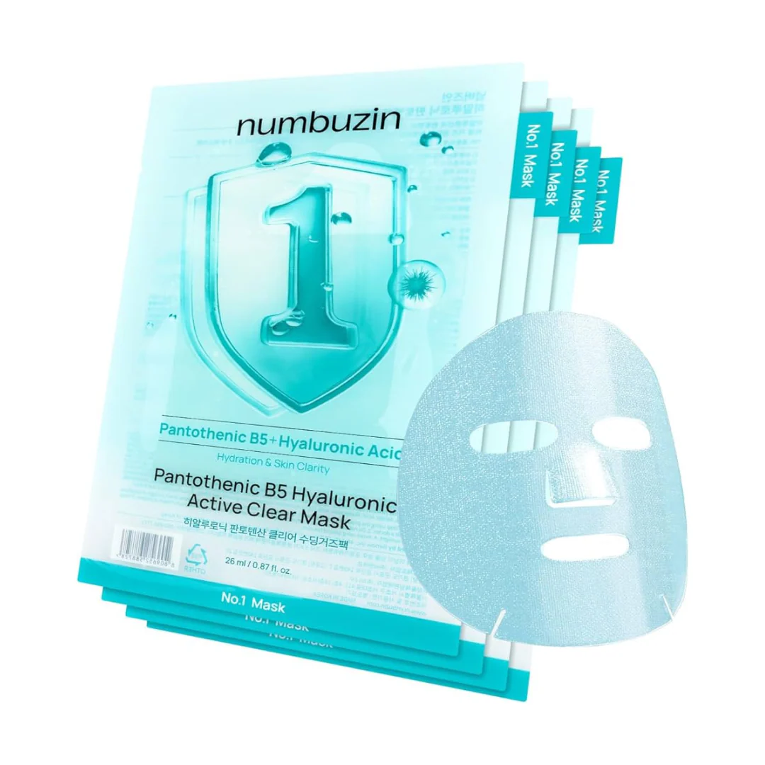 ماسک شفاف کننده هیالورونیک پانتوتنیک B5 نامبوزین (Numbuzin No.5 Pantothenic B5 Hyaluronic Active Clear Mask)، یک ماسک ورقهای درمانی و تسکیندهنده است که به طور خاص برای پوستهای مستعد لک، آکنه، منافذ بزرگ و ناهمواری بافت پوست طراحی شده است.