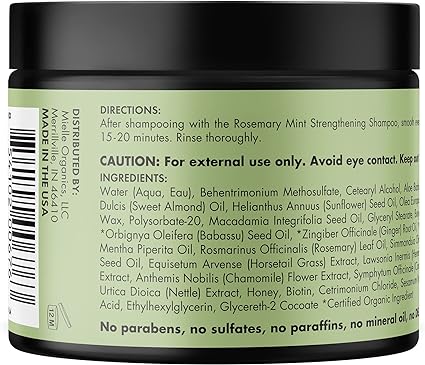ماسک مو رزماری و نعناع میله  Rosemary Mint Strengthening Hair Masque یک محصول محبوب از برند Mielle Organics است که برای تقویت و مرطوب کردن موها طراحی شده است.