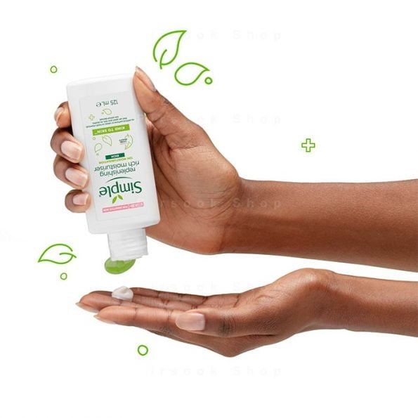 مرطوب کننده سیمپل مدل ریچ مناسب انواع پوست ها به ویژه پوست های خشک، نرمال و حساس است و بافت زود جذبی داشته و رطوبت پوست شما را تا ساعتها حفظ می کند. این کرم مرطوب کننده از برند سیمپل فاقد عطر و رنگ مصنوعی بوده و باعث ایجاد حساسیت پوستی نمیشود. با توجه به بافت و فرمولاسیون غنی این محصول، برای پوست های خشک و نرمال یک گزینه ایده آل و مناسب می باشد و پوست را به طور کامل رطوبت رسانی میکند.
