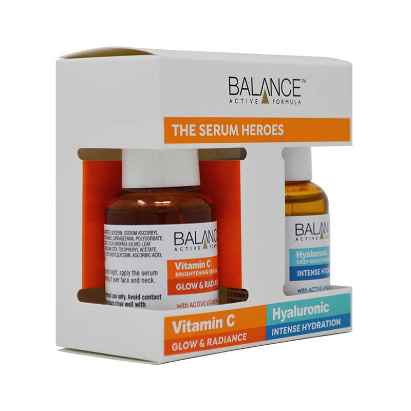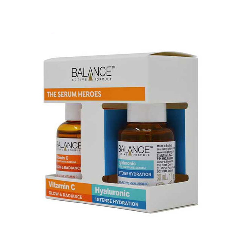 در پک ویتامین سی و هیالورونیک اسید بالانس ، دو سرم با قیمتی بهصرفهتر عرضه میشوند که به شما در داشتن پوستی سالم، متعادل و زیباتر کمک میکنند. سرم هیالورونیک اسید و سرم ویتامین سی از پرفروشترین و پرطرفدارترین سرمهای صورت برند انگلیسی بالانس هستند. سرم هیالورونیک اسید پوست را آبرسانی کرده و به جلوگیری از خشک و دهیدراته شدن آن کمک میکند. همچنین میتواند در جلوگیری از پیدایش خطوط ریز و پوسته پوسته شدن پوست صورت موثر باشد. سرم ویتامین سی، با لکهها و تیرگیهای پوست مبارزه میکند و به مرور زمان باعث یکدست و روشن شدن پوست صورت میشود. همچنین اثر جوانسازی داشته و پوستی شفاف و درخشان به شما هدیه میدهد. پیشنهاد میکنیم برای داشتن پوستی جوان و شاداب، از این محصولات برند بالانس استفاده کنید.