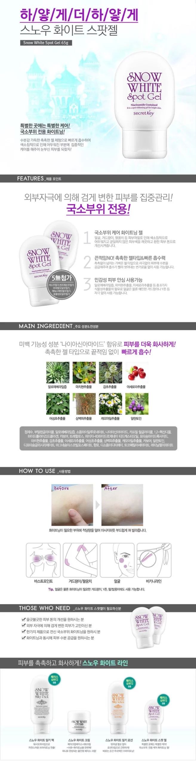 ژل ضد لک سکرت کی Snow White Spot Gel 65g یک محصول مراقبت از پوست است که به دلیل ترکیبات منحصر به فرد و فواید متعددش شناخته شده است. این ژل به طور خاص برای افرادی که به دنبال روشن کردن و بهبود رنگ پوست در نواحی خاص هستند، طراحی شده است.