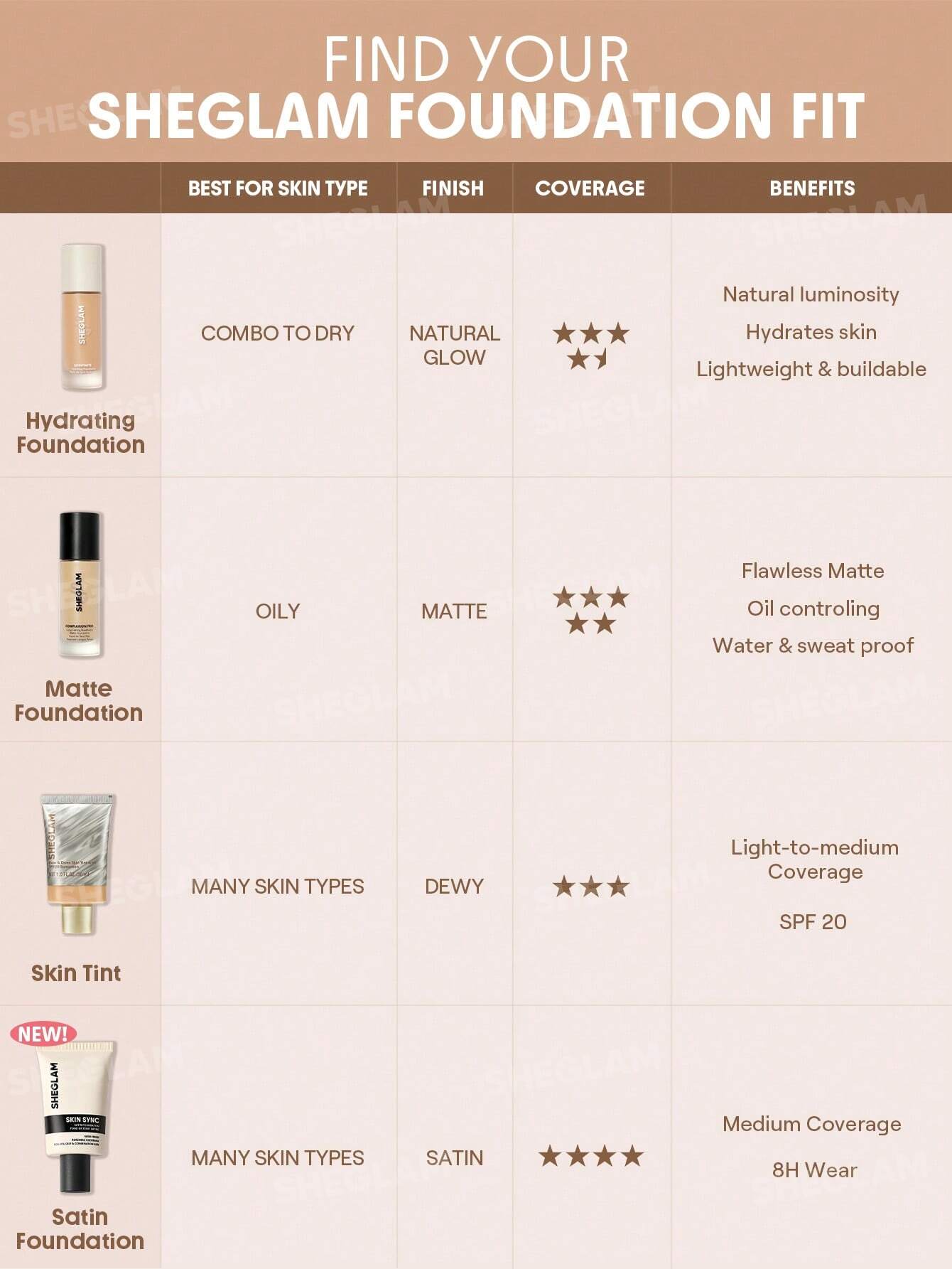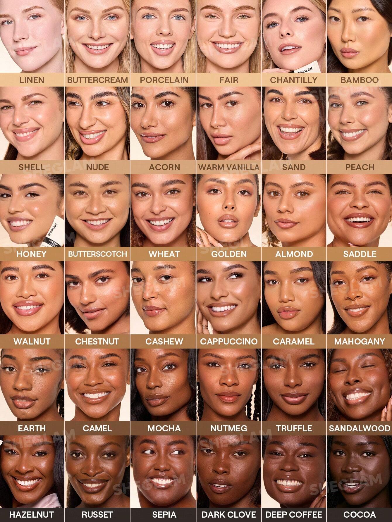 برای اینکه بتوانید دقیقاً بر اساس نام رنگ، انتخاب درستی داشته باشید، در اینجا راهنمای کاربردی برای تمامی اسامی طیف رنگی Skin Sync Satin Foundation آورده شده است. این اسامی بر اساس جلوه‌ای که روی پوست ایجاد می‌کنند، تحلیل شده‌اند: